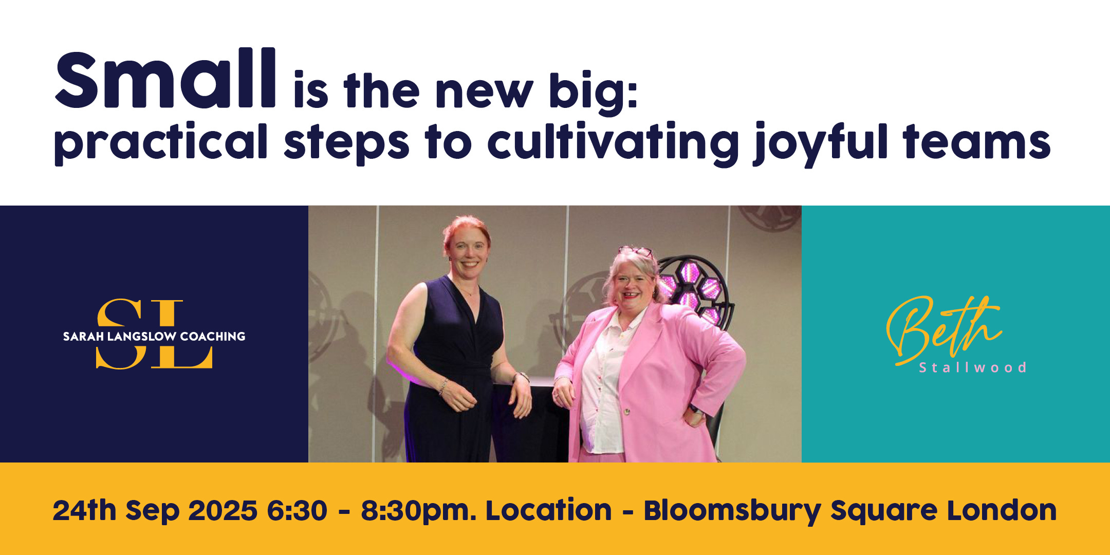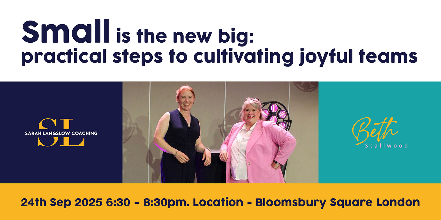 If you’re already slightly dreading the return to chaos in September, join me and the fabulous Beth Stallwood for a zero-waffle, uplifting evening on using micro-behaviours to shape joyful, effective teams.